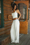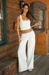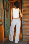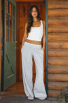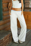 Built-In Gingham Print Boxer Waistband Detail Slouchy Low-Rise Stretch Waistband Relaxed Wide-Leg Silhouette Soft Plush Fleece Fabric with Cozy Interior.
